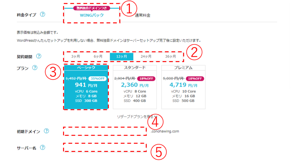 | ③ プラン | 一般的なホームページ、ブログサイトであれば、一番安い「ベーシック」プランで十分です |