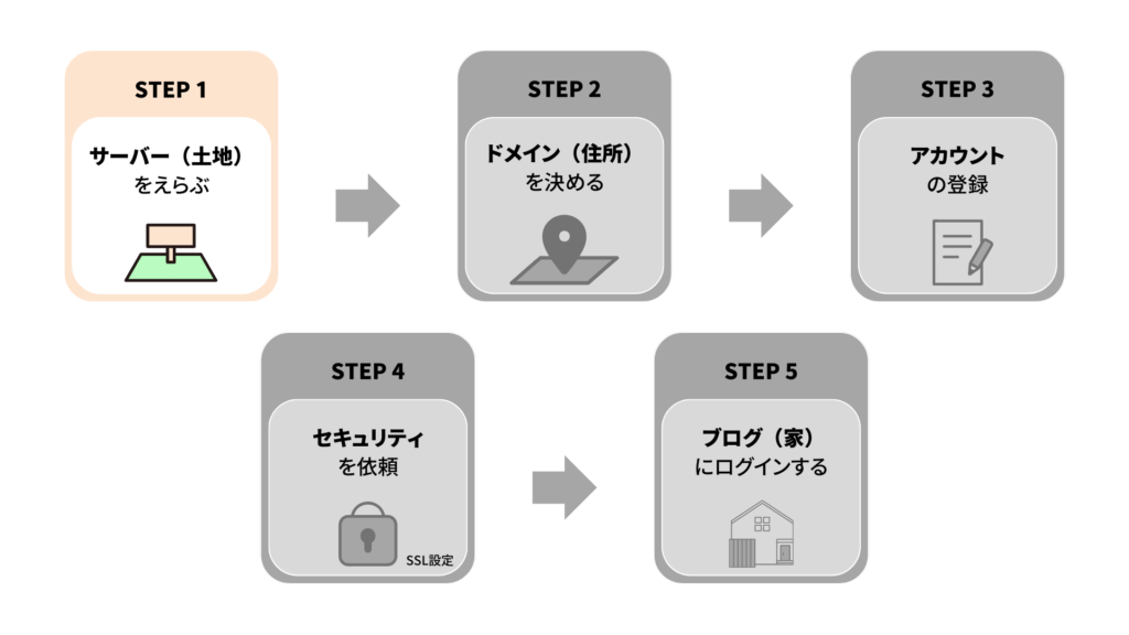 | ⑤ サーバー名 | これは土地に名前を付けるようなものなので、なんでも大丈夫です |