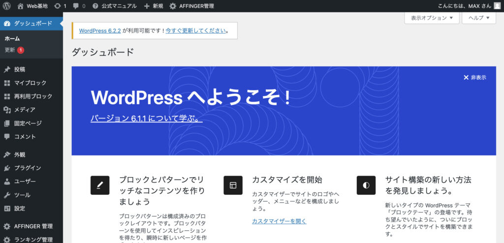 画像の3ようにログインができれば、続いてWordPressの設定に入ります。